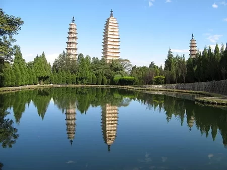 The city is located on the shore of the Dian Lake. It was the model of the Kunming Lake in the Summer Palace in Beijing.