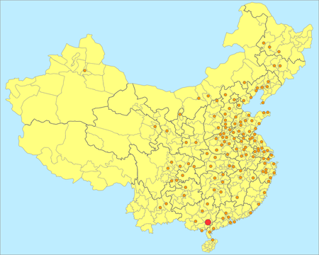 | 7 | Guangzhou | Hong Kong, Shenzhen | Changsha, Nanchang, Shantou, Dongguan, Haikou | Yueyang, Jiujiang, Hengyang, Foshan, Zhuhai, Zhanjiang | Changde, Shaoyang, Ganzhou, Qingyuan, Zhaoqing, Maoming |