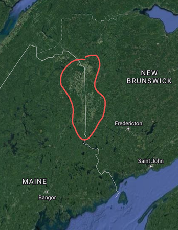 The Saint John River Valley is bisected north-south in half by the border - which at this spot is a straight line. The local population of the valley, to this day mostly francophones, had very little say in where the border was drawn. They did, however, almost