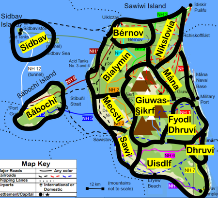 States: Bérnov, Bialymin, Dhruví, Fyodl Dhruví, Giuwas-§ikrf, Måna, Mecstl, Nikslovia, Sawi, Sídbav ßåbochí, Uisdlf, (Nøvå Adhíkun Islands)