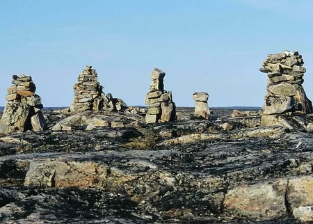 The inuksuk is a stone cairn built by the Inuit, and has become a recognisable symbol of Inuit culture, even appearing on the territorial flag.