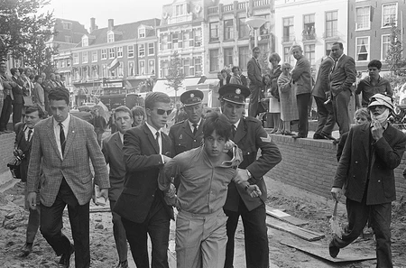Arrest of a provo lid in Amsterdam, 20 sept 1966.