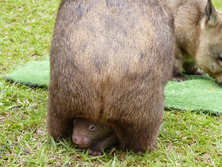 After birth, the wombat joey (barely the size of a jellybean) climbs into the pouch, where it nurses and grows for about 6–10 months. Once it leaves the pouch, it continues to stay close to its mother, often riding on her back or trailing behind until it’s ready to go off on its own.