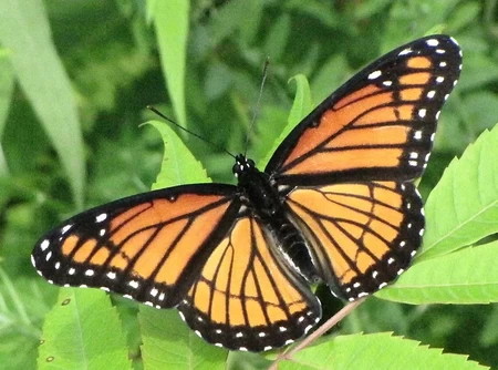 Viceroys look extremely similar to nonarchs, sharing the distinct orange/black color scheme. They also live in overlapping regions, which can lead to misidentification by those who aren't aware of this Müllerian mimicry.