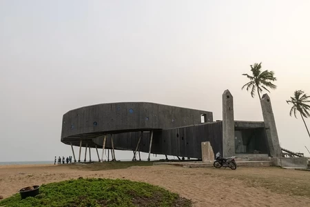 The port was opened in 1473 during the Trans Atlantic Slave Trade era and flourished until around 1880. Nowadays it is a tourist destination visited by historians and adventurers. There was a resort built but this is now abandoned. In the right hand picture below you can see the two pillars that are slightly slanted symbolising the slave route.