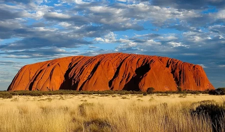 Également appelé Ayers rock, Uluru est un gigantesque bloc de grès isolé en plein désert australien, se parant de merveilleuses couleurs au coucher du soleil. Haut de 348 m pour 2,5 km de long, il a été dégagé par l'érosion, mais on estime que les deux tières de ce rocher son encore enfouis sous terre. Si vous souhaitez respecter les croyances des aborigènes, il est recommandé de ne pas le gravir !